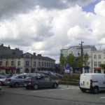 Nieba jest o wiele więcej, a tak rzadko zwracam na nie uwagę. Jest parasolem nad całym kartuskim rynkiem, daje dal i oddech. Słońce dzisiaj pięknie świeci, jak przebije chmury, jak je odsłonią. Lubię bardzo słońce, ale mnie razi, jak chcę patrzeć, albo robić zdjęcia, więc podoba mi się taka pogoda. Chmur jest dziś dużo i są ciemne, kłębiaste, choć nie jest to termin naukowy, nie znam się. Chmury kłębią się sporymi kłębami i zajmują dużą część nieba, które widzę nad rynkiem. Słońce bardzo wysoko, ale jeszcze nie ma południa.